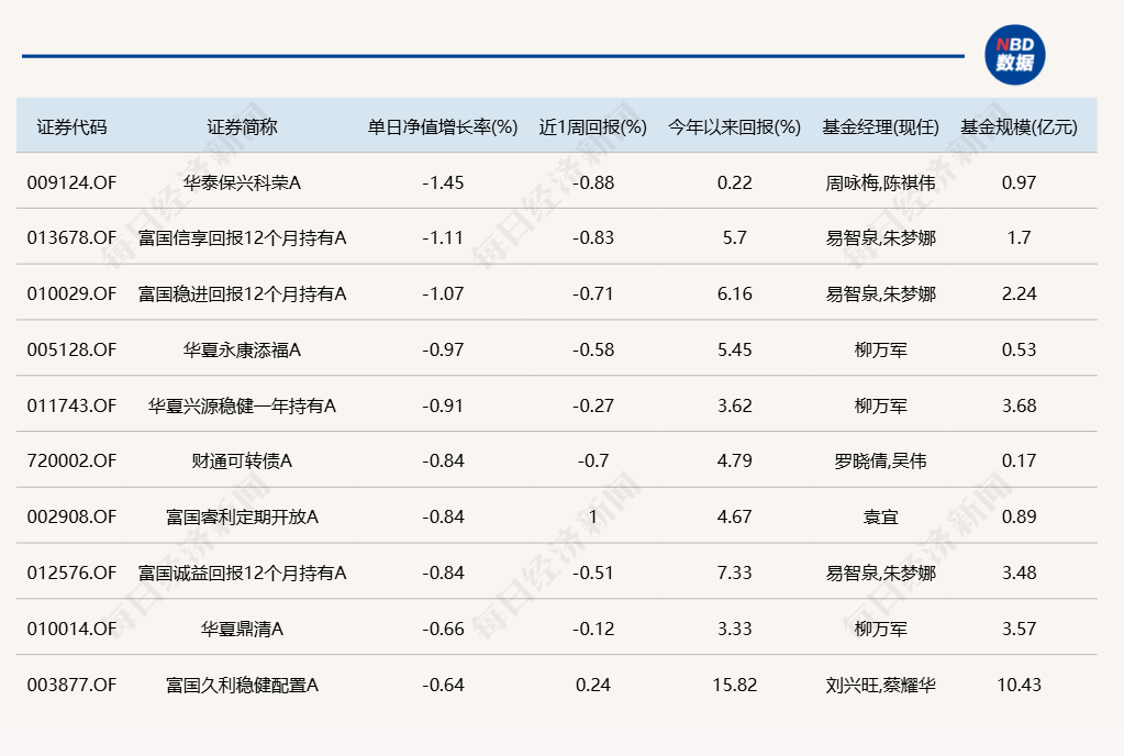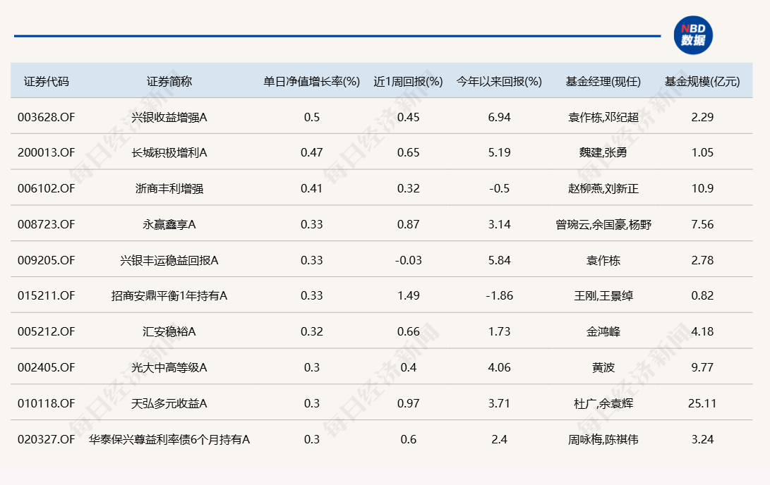 3.单日债基涨跌幅榜