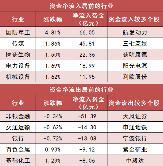 今日沪深两市主力资金开盘净流出29.38亿元,尾盘净流入12.66亿元,全天净流出39.95亿元。