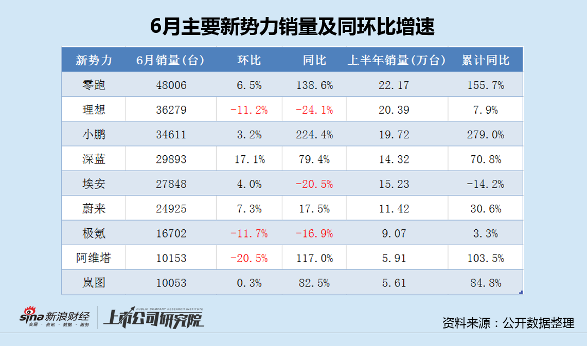 7月伊始,各家新势力陆续披露了6月及上半年的销售成绩单。在主要新势力中,过半数保持了当月及累计的正增长,仅理想和极氪出现同、环比双下滑。