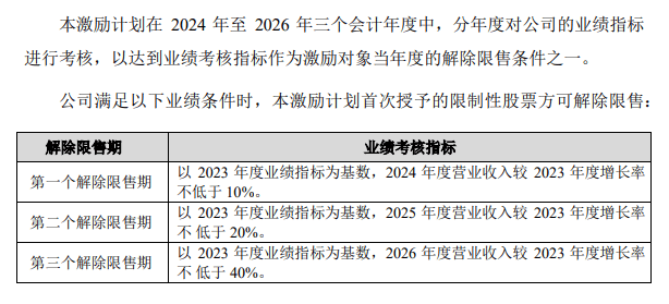 而观察此股权激励的解禁条件,其第一个解除限售期的业绩考核目标为,以2023年度业绩指标为基数,2024年度营业收入较2023年度增长率不低于10%。而美诺华2024年的营业收入较2023年增长12.85%。