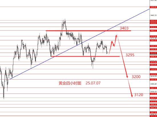 黄金6.23日分析正如预期继续下行,最低跌至3248附近。从日线级别来看,黄金仍然在高位宽幅震荡,符合近两个月大框架分析,本周后市建议按高位震荡偏空头操作,上方重点关注3403一线强阻力,以下还是波段性看空,目标3200和3120区域。本周初重点关注下方3295附近强支撑,以上留意二次向上拉涨行情出现,拉涨后再逢高做空是最理想的走势,备选方案是直接跌破3295区域后,继续下行。目前红线概率相对较大些,今日只有框架思路,没有具体操作建议。