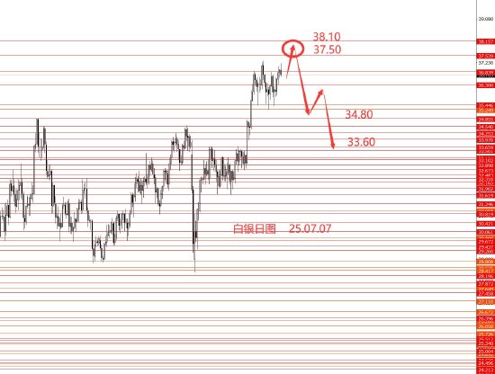 白银36.80承压后35.40又得以支撑,仍然是高位震荡。从图形来看,36.30以上白银向上测试37.50-38.10区域的概率相对较大些,创了新高后留意反转行情出现,即使白银反转,目前也看不到大跌信号,最多还是高位宽幅震荡格局,最远也只能看到33.60一线。若直接跌破36.30,留意直接下跌行情出现。白银今日只有框架思路,没有具体操作建议。等待创新高后,再出现明朗的看空信号后再建议进场操作。今日观望为主。