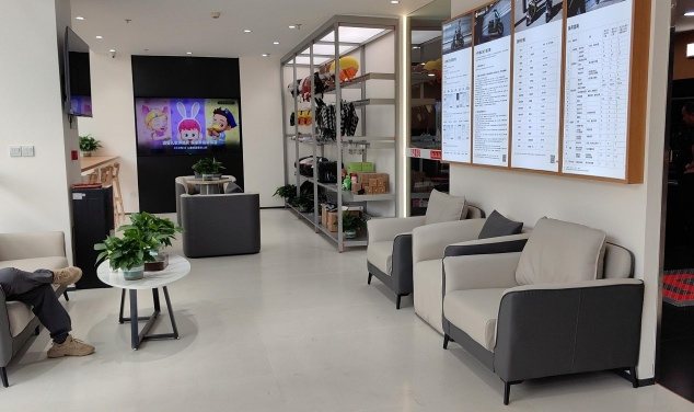 区别于传统维修门店,北京首家综合服务中心采用了简洁的设计风格和更加明确的功能分区,首创“服务+体验”新模式,用户进店后,不仅可以选择在公共休息区、水吧台、私密休息区歇息,而且在享受咖啡等饮品的同时,还可通过透明玻璃查看自己爱车的维修进程。