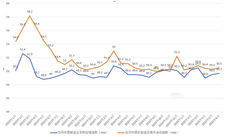 2025年6月,国家统计局制造业采购经理指数(PMI)为49.7%,比5月上升0.2个百分点。