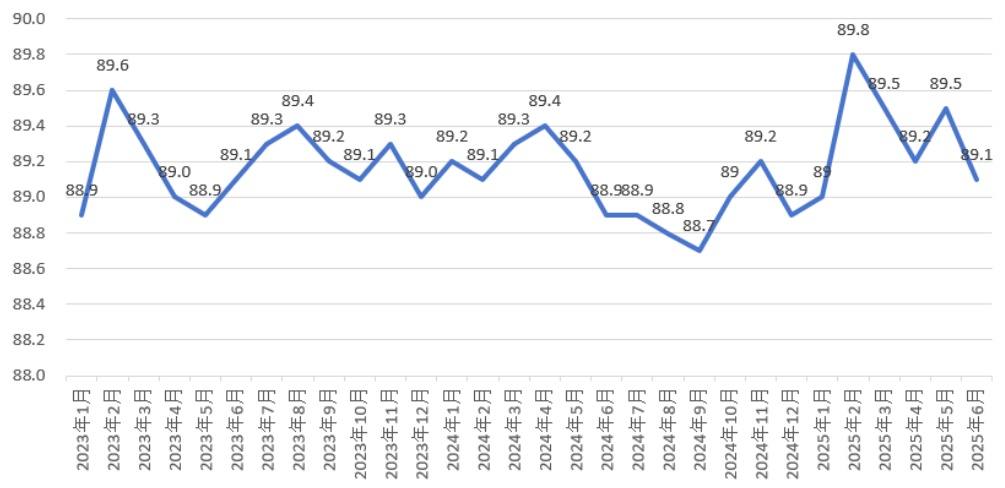 2025年6月,中国中小企业发展指数为89.1,比5月回落0.4个百分点(见图6)。