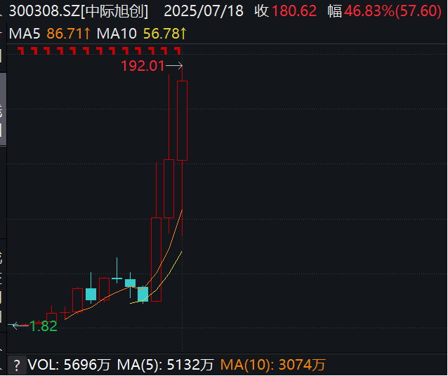 中际旭创的股价表现也非常亮眼,最新价较发行价涨幅接近59倍(后复权)。