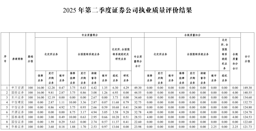 券商二季度执业质量评价结果发布。