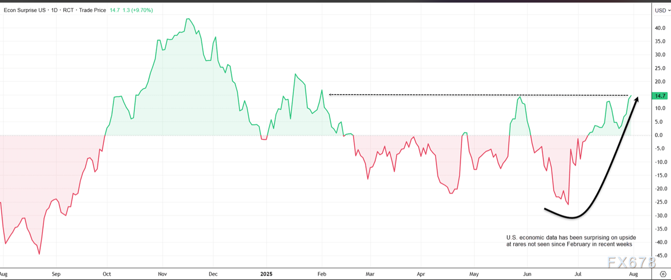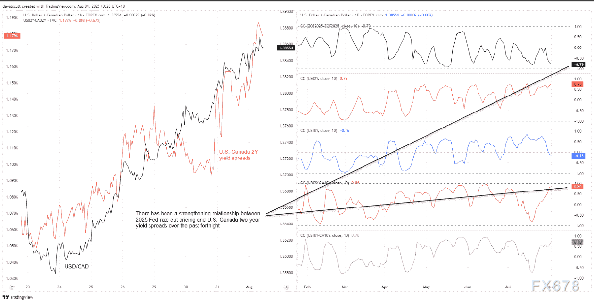 当地时间周四(7月31日)特朗普意外将加拿大关税提高至35%成为头条新闻,白宫在声明中指出,此次加税是“为应对加拿大持续的不作为和报复行为”,并称总统“认定有必要以提高税率的方式,有效应对当前的紧急局势”。但由于刚受到美联储鹰派发言驱动而已经走强的汇价而言,这次对加元影响不大。