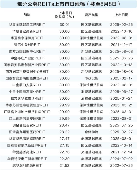 超两成REITs上市首日涨停