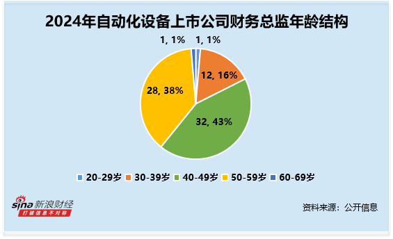 从年龄结构来看,财务总监CFO的年龄平均数约为47.16岁,其中40-49岁最多,人数共32人,占比约43%。其中,年龄最大的为瑞晟智能王旭霞,年龄为61岁,2024年薪酬为26.93万元;年龄最小的为欧克科技陈真,年龄为29岁,2024年薪酬为15.25万元。