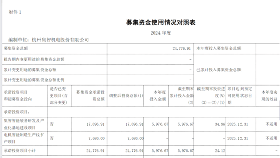 产能与募投项目则更显棘手。公司可转债募投的“集智智能装备研发及产业化基地建设项目”计划总投资1.89亿元,截至2024年末仅投入0.60亿元,进度不足三分之一;同期募集资金专户余额达1.89亿元,占净额的76%。