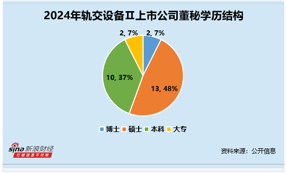 从年龄结构来看,董秘的年龄平均数约为44.19岁,其中40-49岁最多,人数共14人,占比约52%。其中,年龄最大的为中国通号李连清,年龄为55岁,2024年薪酬为73.33万元;年龄最小的为永贵电器许小静,年龄为34岁,2024年薪酬为52.48万元。