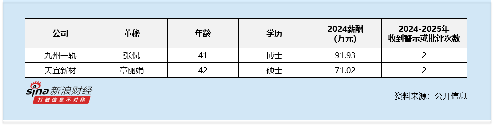 从违规情况来看,行业内共有2名董秘在2024-2025年收到过警示函、公开通报或内部通报的情况。