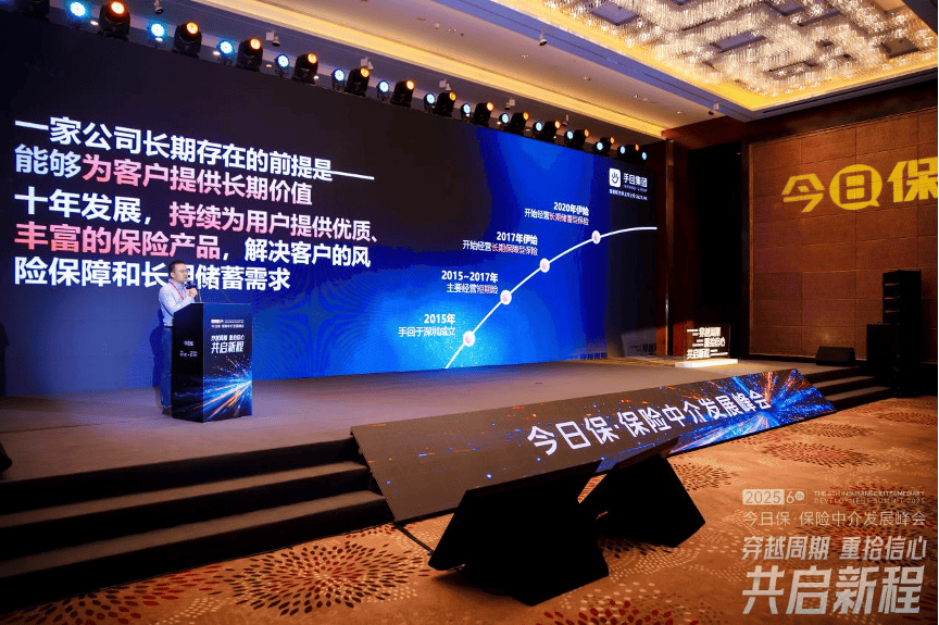 2025年7月19日,由今日保主办的第六届保险中介发展峰会在北京粤财JW万豪酒店隆重举行。本届峰会以“穿越周期 重拾信心 共启新程”为主题,汇聚了保险行业专家学者、企业高管及中介机构代表,共同探讨保险中介行业在新周期下的发展机遇与挑战。小雨伞保险经纪总经理陈德涛受邀出席并发表主题演讲,分享了手回集团成立十年来的发展经验与未来战略布局。