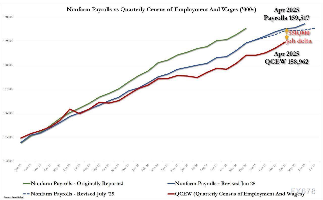 2025年9月9日,美国劳工统计局将发布非农就业数据的年度初步基准调整结果。此次调整将对2024年4月至2025年3月的非农就业数据进行重大修正,堪称2024年8月那次“震惊市场的调整”的翻版――正如前文所述,2024年的调整正是鲍威尔实施大幅降息的导火索。