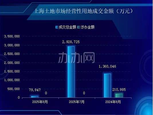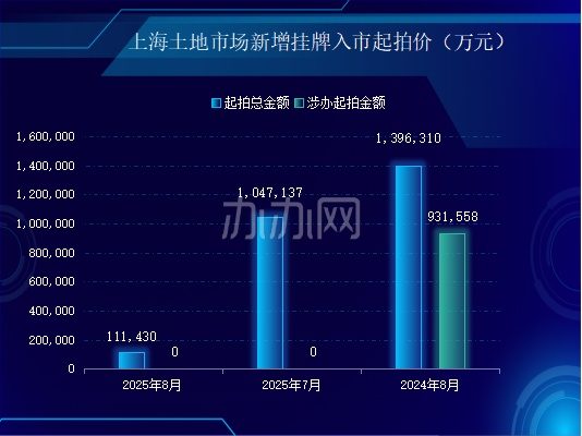 8月上海土地市场进入休整期,供应量和成交金额环比正常回落。