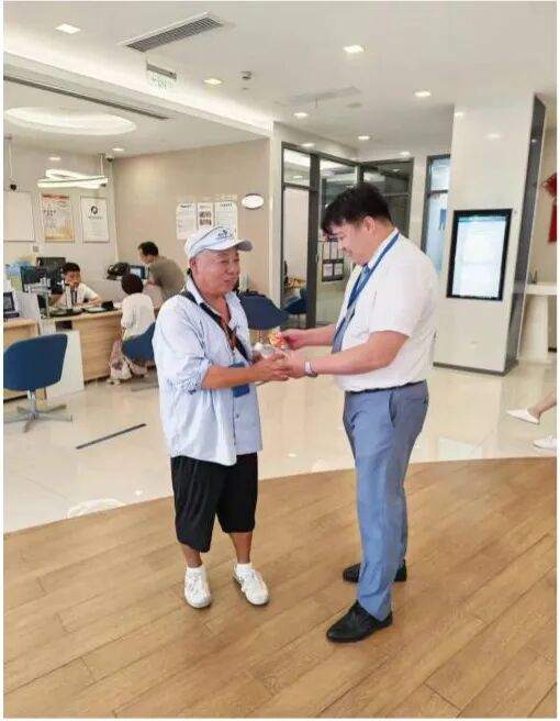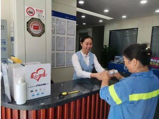 上海银行不仅送上解暑用品,还贴心地为环卫职工们发放了精心制作的爱心服务卡。服务卡上详细标注网点地址、联系方式以及各项特色服务;此外还着重介绍了网点“爱心接力站”的便民设施,如微波炉、冰箱等,并热情邀请环卫职工在工作间隙若有休息、热饭等需求。