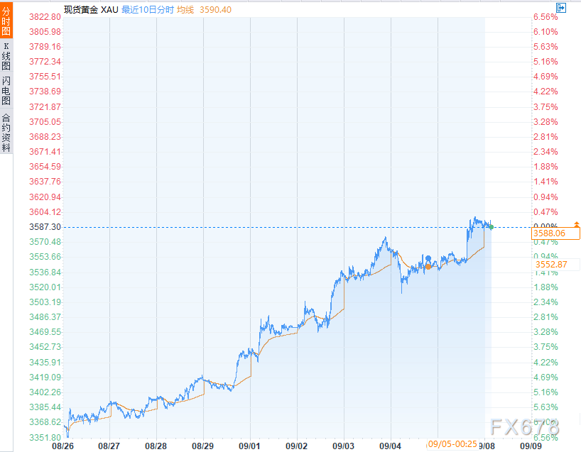 尽管美债持续获得买盘青睐,真正的赢家仍是黄金。过去10日金价走势图呈现标准的“左下至右上”强势攀升格局。