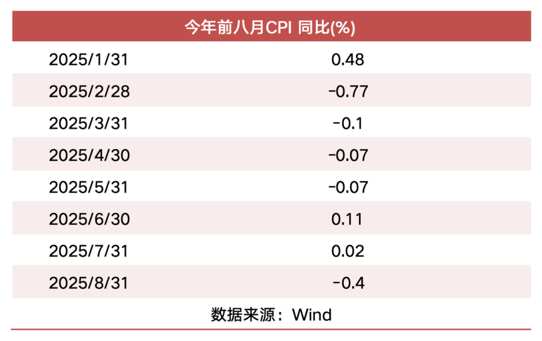 与此同时,8月CPI同比为-0.4%,环比持平;核心CPI8月为0.9%,连续4个月扩大,同比持续回升。今年前八月,CPI曾有五次单月负增长。