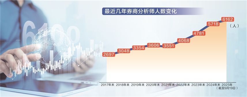 据记者对中国证券业协会数据的统计,截至9月19日,券商分析师数量达6162人,今年以来新增超400人。