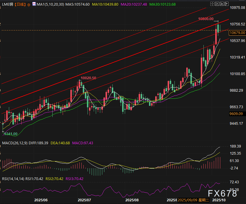 因此,美元走弱、滞胀压力,以及市场普遍认为美国经济主导地位正受到挑战的观点,均在推动黄金价格上涨。除此之外,美联储再次降息,也使得黄金这类无息资产的相对吸引力有所提升。这一因素同样对铜及其他金属价格起到支撑作用。
