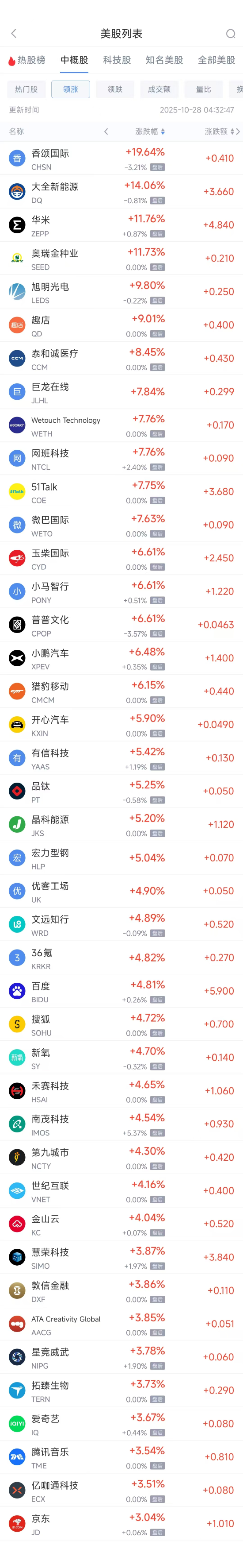 (截图来自新浪财经APP 行情-美股-中概股热门板块)下载新浪财经APP