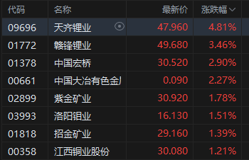 有色金属板块涨幅居前,天齐锂业涨超4%。11月25日,在“2025年第二届中国国际锂业大会”上,天齐锂业董事长蒋安琪致辞表示,受惠于可再生能源并网需求、商用重卡等电动化设备增长迅速,储能领域及动力电池对基础锂材料的需求持续上涨,预计明年全球锂需求量将达到200万吨碳酸锂当量,基本达到供求平衡。