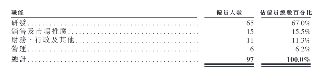 截至2025年6月底,公司员工总数不足100人,其中研发65人,占比67%。2025年上半年,15名销售的薪酬(即销售及营销开支中的雇员福利开支,下同)合计981.2万元,算下来人均月薪高达10.9万元。按同样方式计算得出,研发人均月薪却只有2.59万元,不到销售的四分之一。