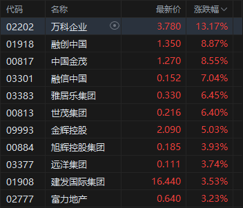 内房股走高,万科企业涨超13%。万科12月10日在会中告知其债券持有人,如果他们不投票赞成延长其12月15日到期的20亿元人民币(约2.829亿美元)3%的在岸债券的提议,公司将使用债券募资说明书中提及的5天宽限期。万科会前曾告诉部分投资者,希望将宽限期延长至30天,并可能在延长期内支付“部分利息”。