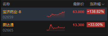 今日两只新股上市,图达通涨33%,宝济药业涨超138%。特殊目的公司TechStarAcquisition Corporation(股票代码:“7855”)与Seyond Holdings( 图达通 )完成合并, 图达通通过特殊目的公司合并的方式在港交所上市作为第三家成功以SPAC方式登陆港交所的上市公司,图达通合计募集资金约10.27亿港元。