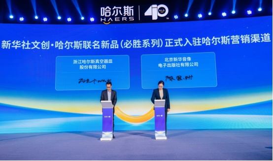 图为新华社文创・哈尔斯联名新品“必胜”系列正式入驻哈尔斯营销渠道签约仪式现场