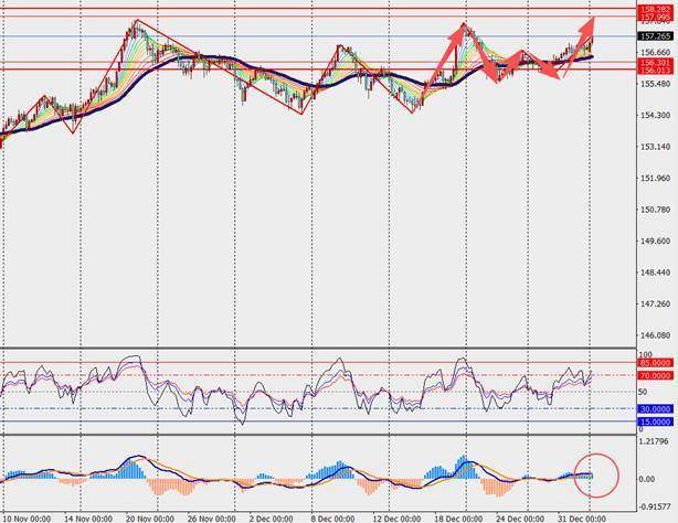 第一阻力位:158.00 第一支撑位:156.50