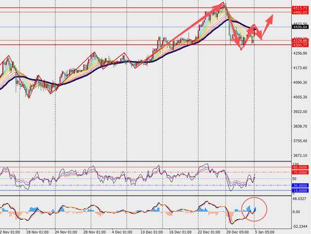 第二阻力位:4442.00 第二支撑位:4370.00