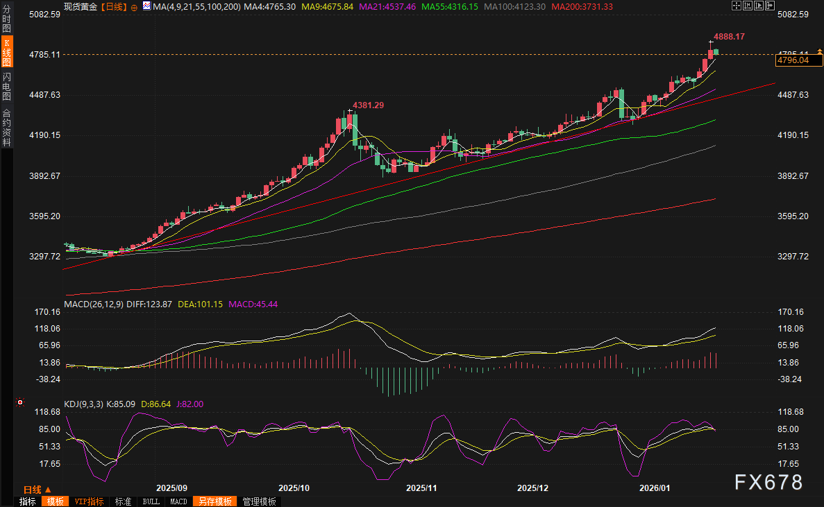 (现货黄金日线图,来源:易汇通)北京时间07:59,现货黄金现报4782.81美元/盎司。