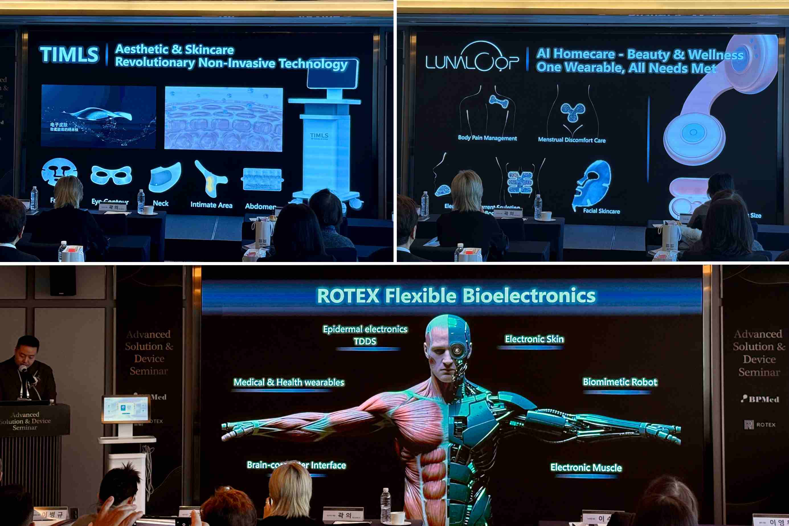 此次发布会以学术研讨的方式进行。Nuvolab院长李秀妍、建国大学抗老化生物学博士成英焕教授,以及来自韩国、美国、日本的多家器械流通代表、东南亚美容协会代表郑相泽、东南亚市场代表Le Hoai Thuong先生、Nuveau Beauty院长金锡中等近百位行业人士共同参与。韩国皮肤科权威专家及多家行业媒体出席,共同见TIMLS电子皮肤促渗系统正式开启全球化应用新纪元,不仅以“ROTEX柔性生物电子技术”开启无创透皮美容海外市场新篇章,更以扎实的临床验证与深度本地化合作,深化中国智造的全球价值。