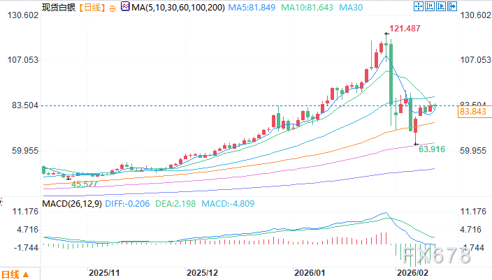 北京时间2月12日14:32 现货白银 报 83.39 美元/盎司