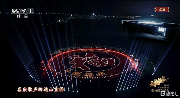 伴随”福来 福来”的动感旋律,问界M9组成的车阵光影流转,勾勒出寓意圆满美满的视觉元素。车阵中心,”福” 字与 “问界山河” 字样点亮夜空,科技感与祝福意象交融,让问界M9的第三次春晚亮相成为亿万观众心中的新春记忆。
