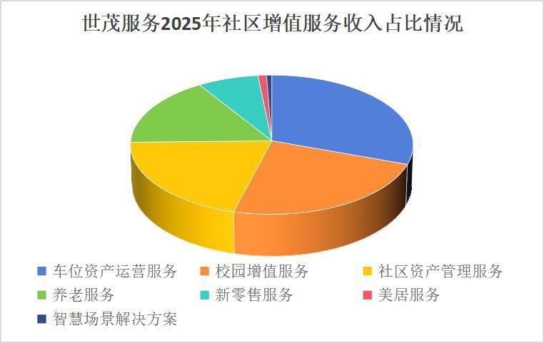 年报显示,世茂服务社区增值服务的服务范围主要包括社区资产管理服务、智慧场景解决方案、车位资产运营服务、美居服务、新零售服务、校园增值服务、养老服务等等,其中,车位资产运营服务收入占比最高,为30.4%,年内创收超4亿元。
