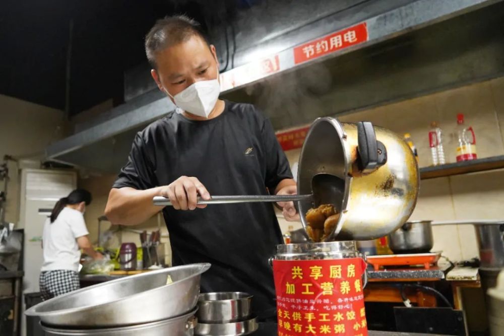 后来,同样在菜市场开店的张广兵、魏兴江也加入进来。2020年菜市场拆迁,3位合伙人共同盘下目前的房子,继续经营共享厨房。