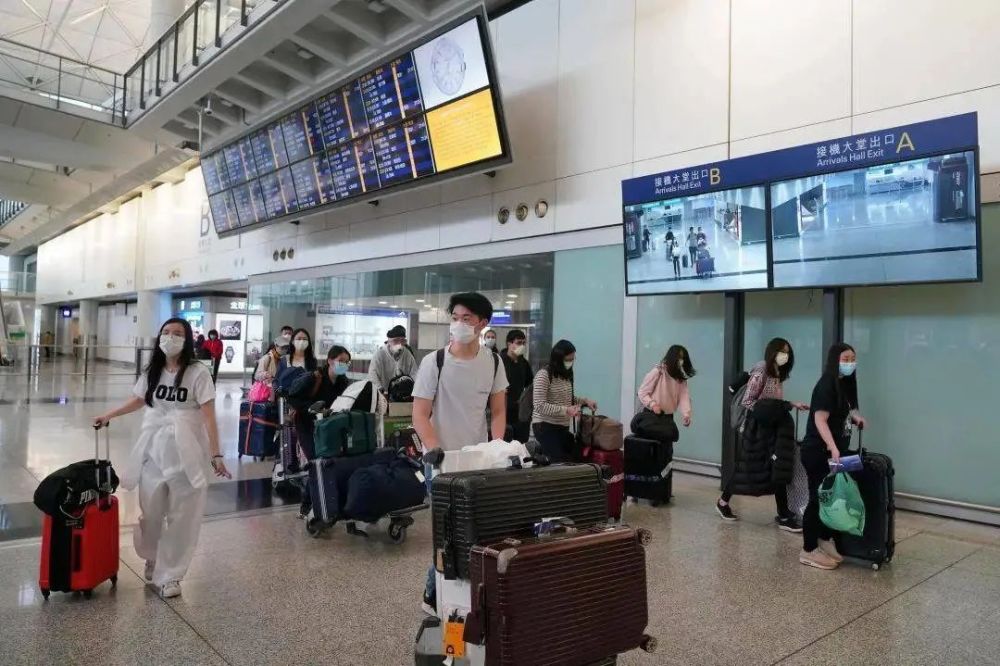 众多留学生搭乘英国伦敦飞香港的航班抵达香港国际机场 图源:中新社