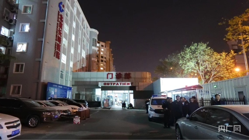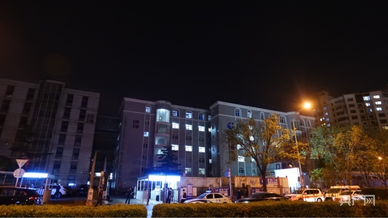 夜色中的北京长峰医院(央广网记者朱冠安摄)