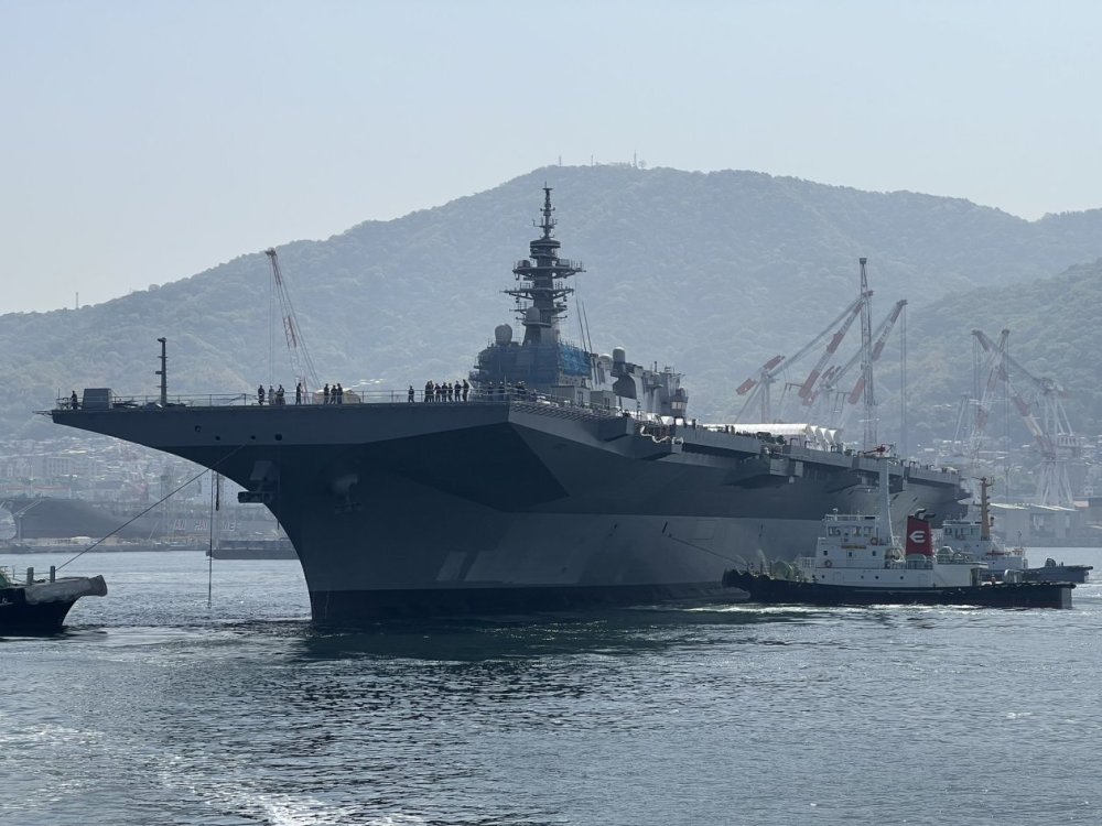 【环球网报道】日本雅虎新闻平台20日刊发了英国《简氏防务周刊》的东京特派记者高桥浩祐的署名报道。报道称,在4月20日当天,正在进行“航母化改装”的日本海上自卫队“加贺”号自去年3月进入修理船坞开始改装后首次驶出船坞。报道还称,20日驶出船坞的“加贺”号舰首变为方形,前甲板的形状与开始改装前大相径庭,显示了“航母化改装”的最新进展。