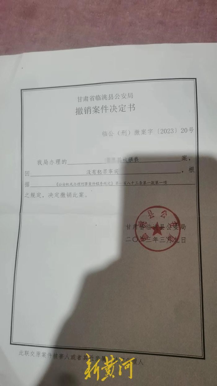 之后,宋先生提出复议申请,2022年8月收到复议决定书,决定书显示因现有证据无法证实存在犯罪事实,决定维持原决定。9月,宋先生向临洮县人民检察院提出立案监督申请,之后临洮县公安局再次受理案件。一直到2023年3月9日,县公安局因没有犯罪事实撤销案件。