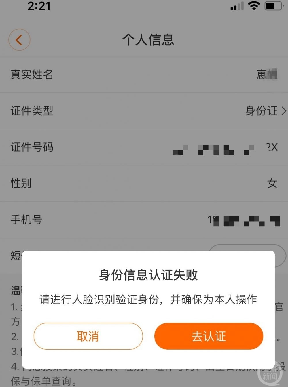 ▲进行实名认证时,系统无法通过。图片来源/受访者供图