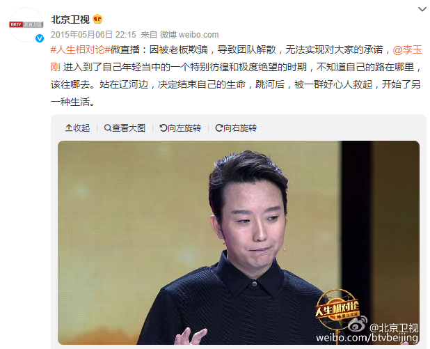 这段经历,李玉刚早在2015年北京卫视《人生相对论》的采访中就分享过了。