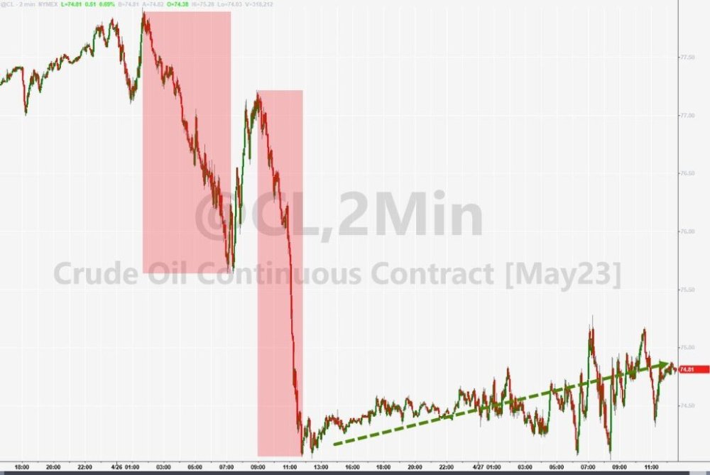 最终,原油走出连日所创的3月末以来收盘低位,但未能抹平周三所创的3月15日以来最大日跌幅。