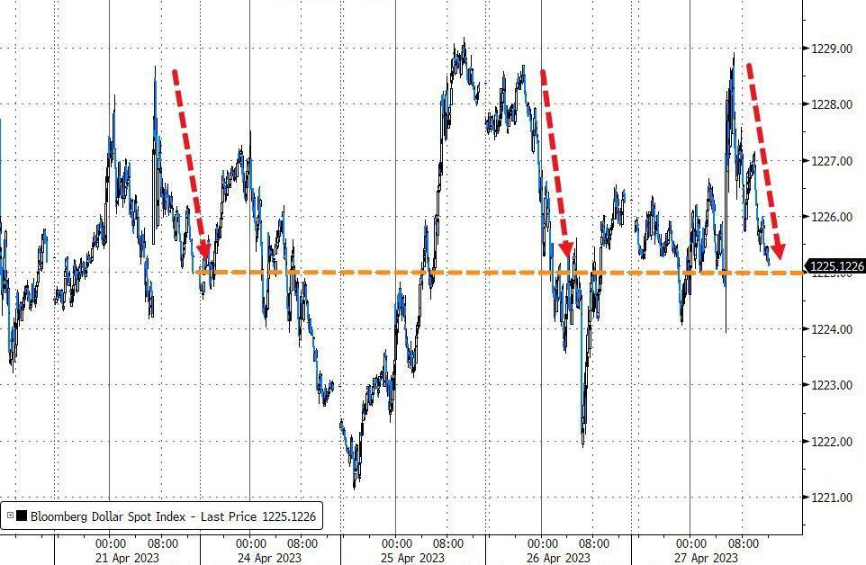 追踪美元兑欧元等六种主要货币一篮子汇价的ICE美元指数(DXY)周四盘中转涨,在亚市盘中、欧股盘前曾跌破101.30,日内跌近0.2%,靠近周三逼近101.00而连续三日所创的去年4月22日以来盘中低位,美国GDP和PCE指数公布后,盘中跳涨,美股盘前迅速涨破101.60,早盘曾涨破101.80刷新日高,日内涨超0.3%,后逐步回吐多数涨幅。
