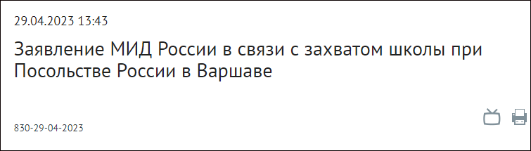 “4月29日,波兰当局闯入俄罗斯大使馆的学校,目的是没收它”,俄罗斯外交部称,俄方认为,波兰“又一次的敌对行动公然违反了1961年《维也纳外交关系公约》,侵犯了俄罗斯在波兰的外交财产”。