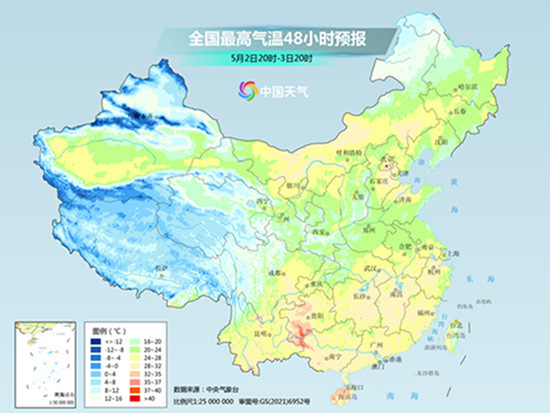 5月1日,中东部大部依然维持升温态势,尤其东北到华北北部一带,普遍升温6-12℃,一下子变得暖热起来。西北地区东部、黄淮、江淮等部分地区,最高气温达到了30℃左右,西安最高气温突破30℃,刷新今年来气温新高。不过,中东部经历暖热的同时,新一股冷空气正在给新疆等地带来大风降温天气,这股冷空气移动缓慢、路径偏西,2日3日仍主要影响新疆、甘肃、内蒙古西部等地,降温幅度达4-8℃,局地10℃以上。
