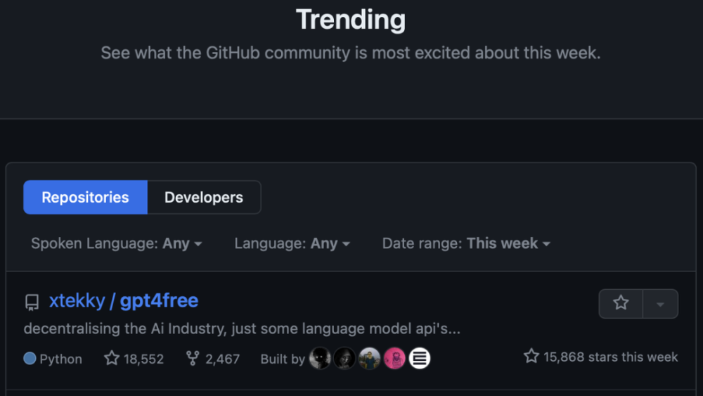 最近,一个名为GPT4Free项目横空出世。不仅在GitHub上斩获18.5k星,而且登上了Trending周榜。